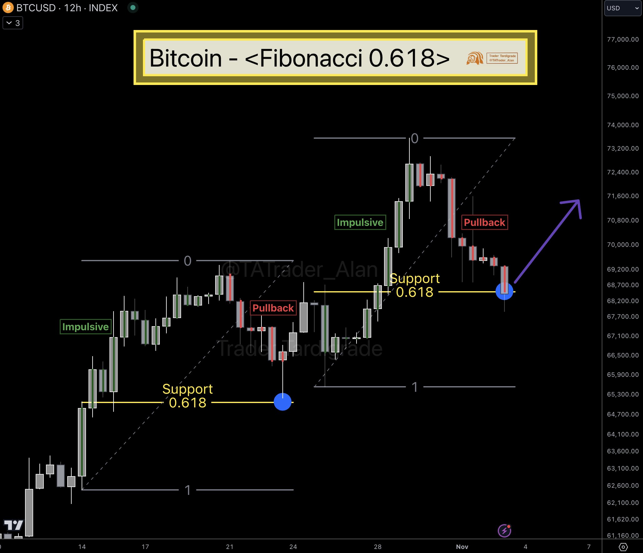 Tüccar Alan Tardigrade, “Bitcoin, sağlıklı bir geri çekilme için ortak destek olan 0,618 Fibonacci seviyesine geri döndü” dedi.