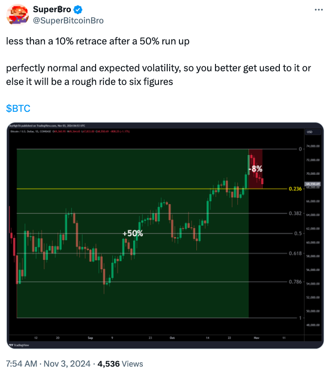 Crible Crypto 3 Kasım'da “büyük bir düzeltme” uyarısında bulunsa da şunları söyledi: “Şimdilik bu seviyeyi atlayabilecek miyiz, daha sonra satın alabiliriz.”