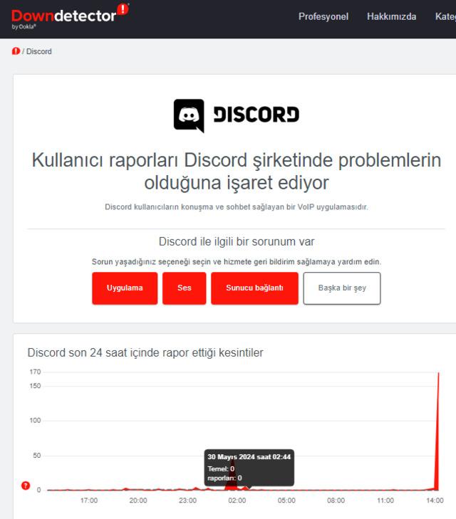 Verilere göre, WhatsApp, Discord ve Instagram için downdetector'a ulaşan kullanıcılardan gelen raporlar, saat 14.00 sıralarında ciddi bir artış olduğunu gösteriyor.